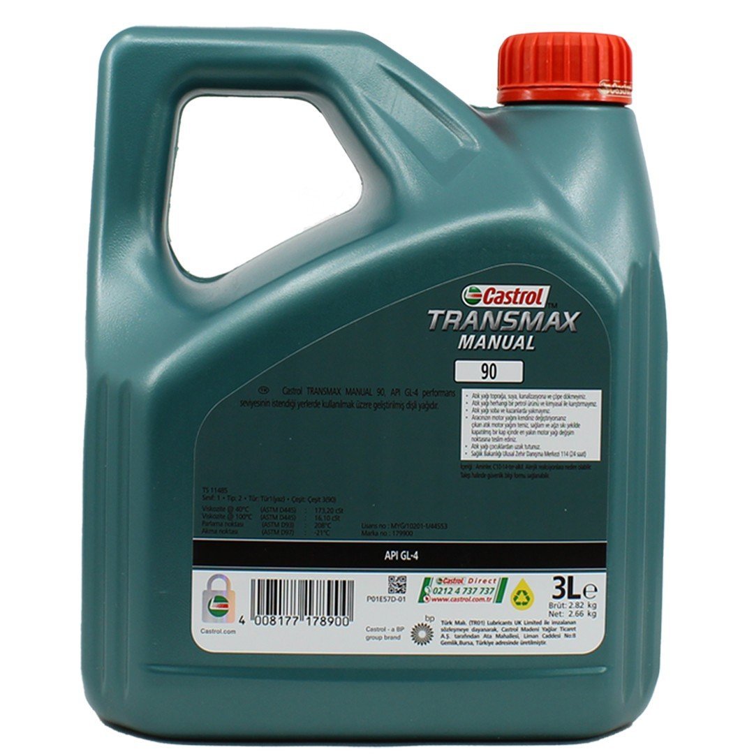 Castrol Transmax Manual 90, API GL-4 onaylı, manuel şanzımanlarda üstün termal kararlılık ve aşınma koruması sağlayan manuel şanzıman yağıdır.