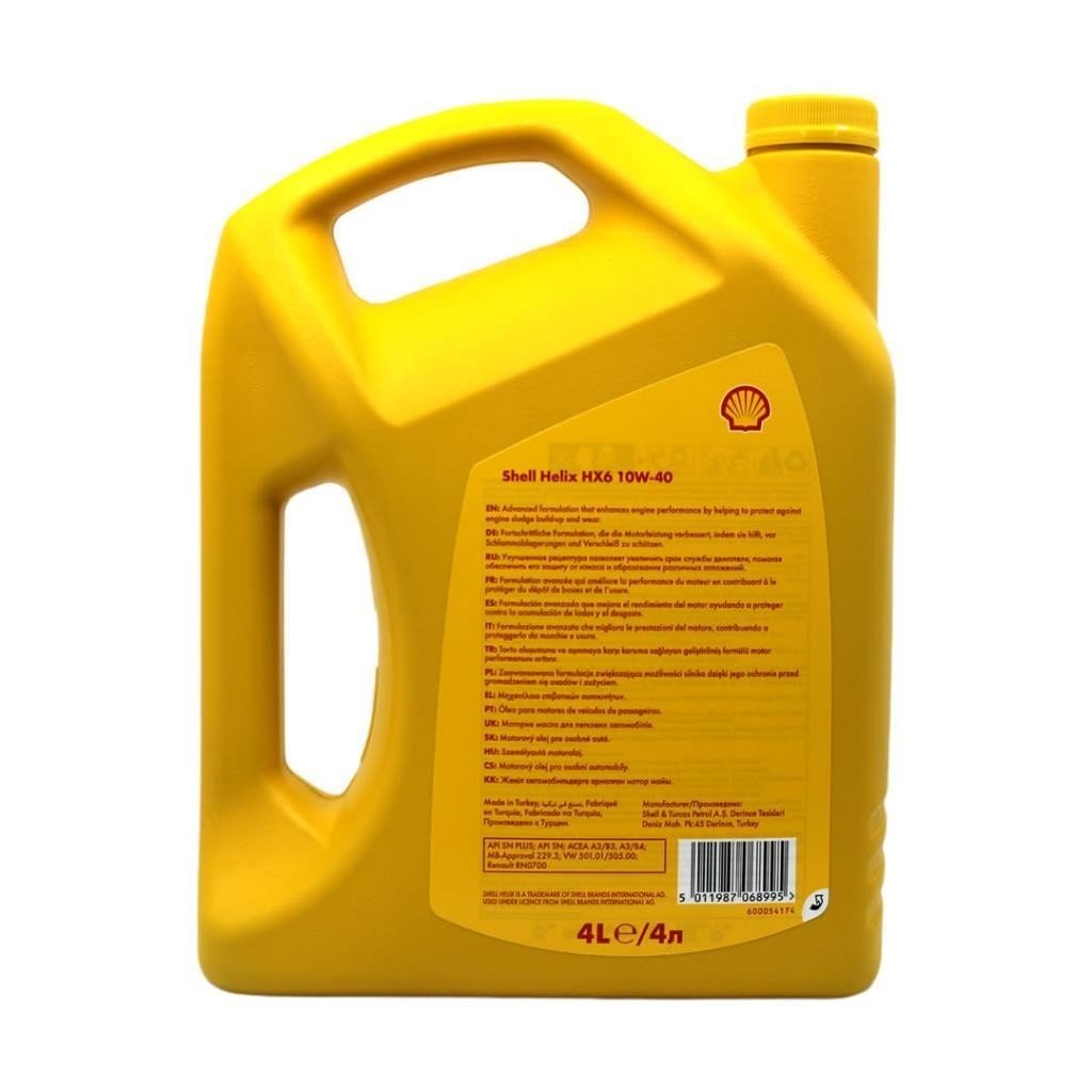 Shell Helix HX6 10W40, motor performansını artırmak ve uzun ömürlü koruma sağlamak için özel olarak formüle edilmiştir. Yüksek kaliteli sentetiğin yanı sıra mineral baz yağlarının karışımı ile üretilen yağ, motor içerisindeki sürtünmeyi azaltarak daha verimli kullanım performansına zemin hazırlar.